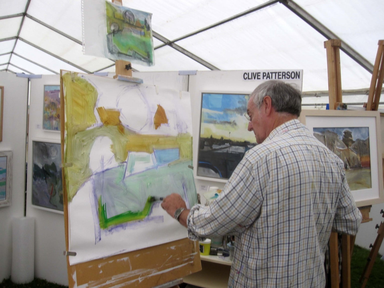 My first invitation to work and show at the Childwickbury Art Fair was a great success and an occasion that I really enjoyed being part of. Most visitors showed a lot of interest in my work and engaged in very interesting discussions about my way of painting. Two of which ended in sales which was a great reward for the effort I put into the show. I hope to repeat the show again next year and hopefully be more confident about what I can achieve in the three days that it runs.  Here are some photos of work in progress –