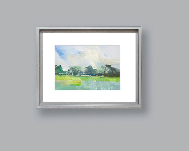 £190 – Glazed and mounted in a light grey wood frame.
